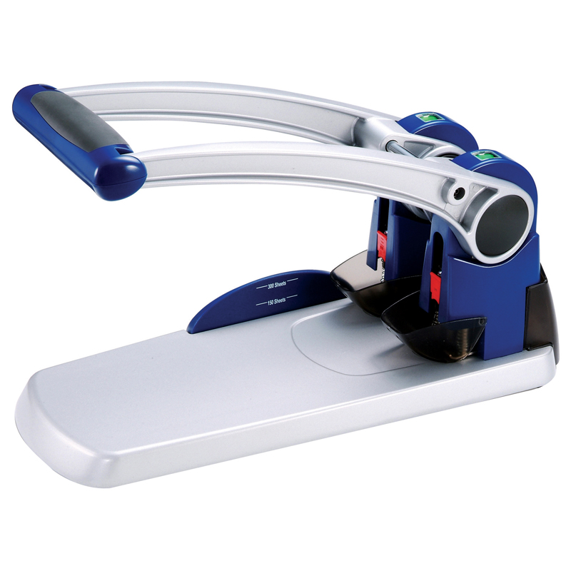 УЦЕНКА-Дырокол мощный KW-trio 300 л, синий/серебристый, с линейкой