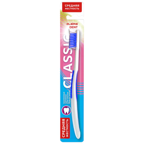 Зубная щетка средней жесткости (ассорти 4 цвета), LAIMA DENT "CLASSIC", xxxxxx, 609312
