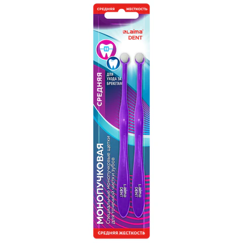Зубная щетка монопучковая, для ухода за брекетами, для детей, КОМПЛЕКТ 2шт, LAIMA DENT, 609321