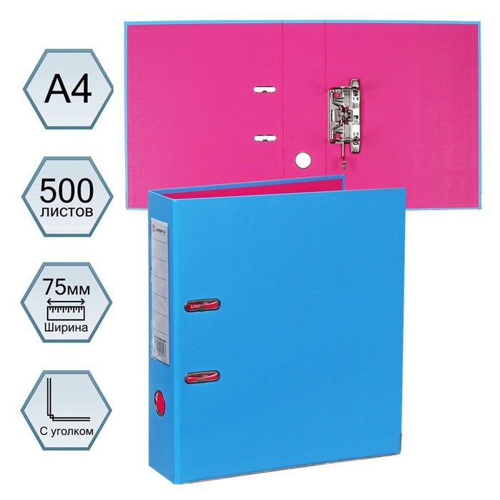 Папка-регистратор А4, 75 мм, Lamark, ПВХ, двухстороннее покрытие, металлическая окантовка, карман на корешок, собранная, синий/розовый