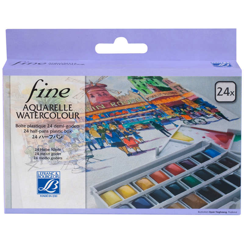 Набор акварели Lefranc&Bourgeois "Fine Watercolours", 24 полукюветы, пластиковая коробка