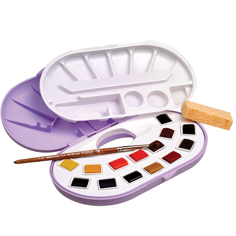Набор акварели Lefranc&Bourgeois "Fine Watercolours", 14цв. + кисть и губка, полукюветы, пластик. коробка
