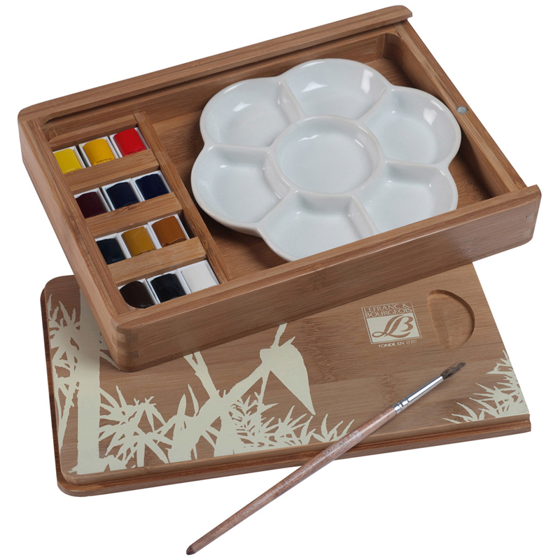 Набор акварели Lefranc&Bourgeois "Fine Watercolours", 12 кювет, бамбуковая коробка