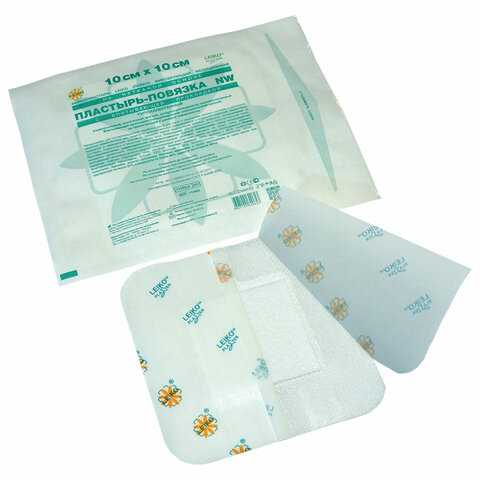 Послеоперационная пластырь-повязка LEIKO 10х10 см, на нетканой основе, со впитывающей прокладкой, 113965