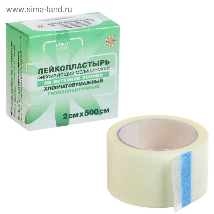 Лейкопластырь медицинский фиксирующий в рулоне LEIKO 2х500 см, на нетканой хлопчатобумажной основе, в картонной коробке, 531724