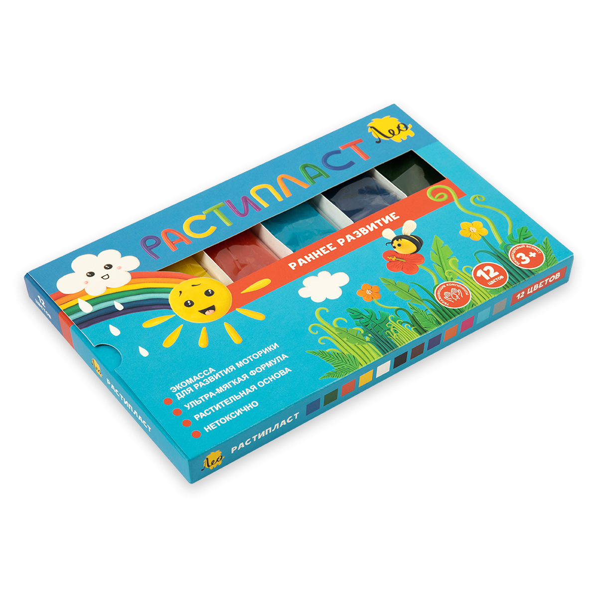 Пластилин Лео "Расти", 12 цветов, растительный, 240г, картон. упаковка