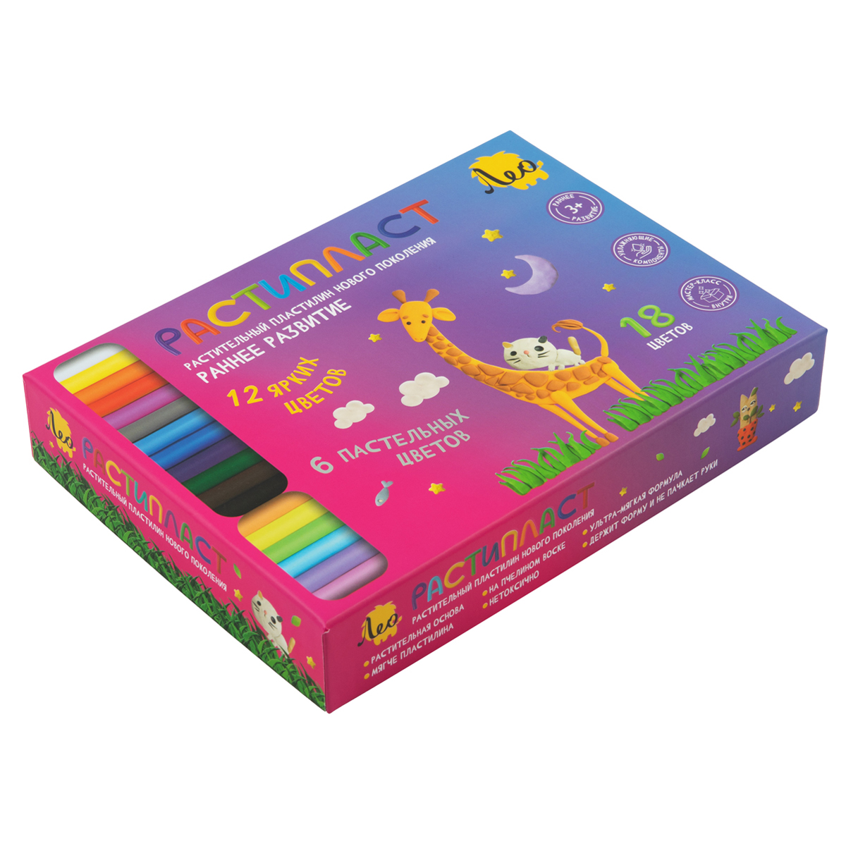 Пластилин Лео "Расти. РАСТИпласт", 18 цветов, растительный, 360г., картон. упаковка