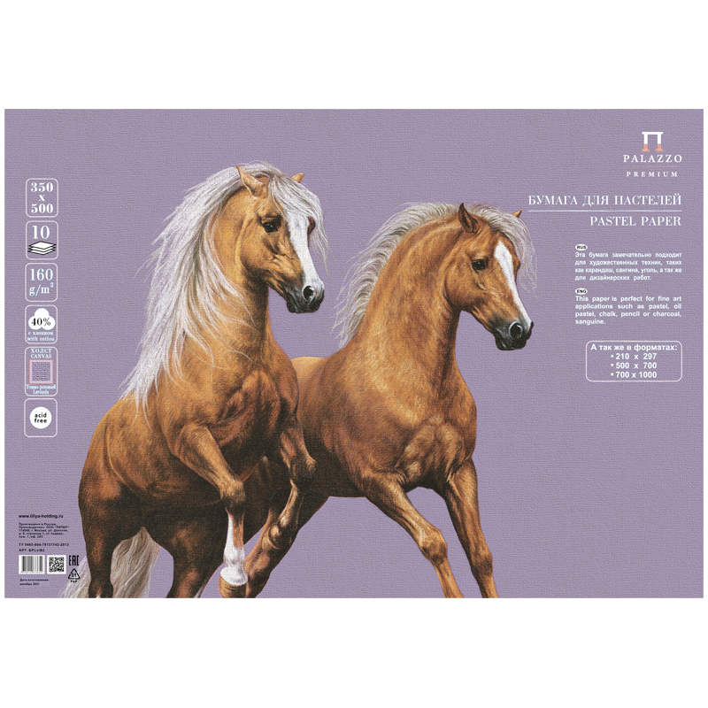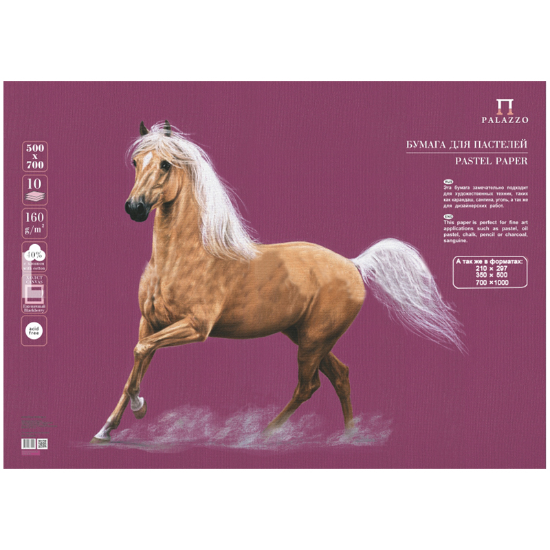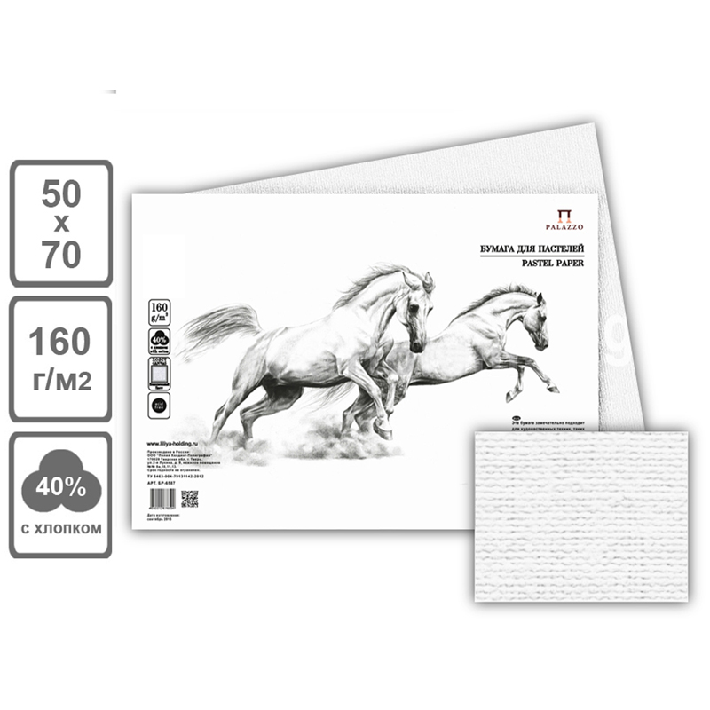 Бумага для пастели, 10л., 500*700мм Лилия Холдинг "Палаццо", 160г/м2, белоснежный