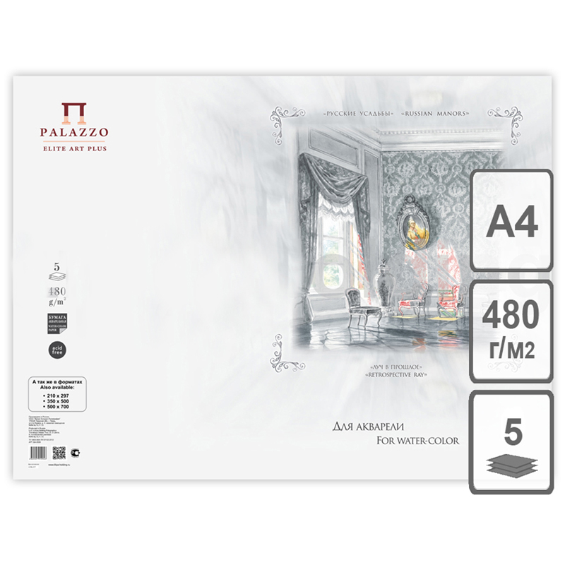 Бумага для акварели, 5л., А4, Лилия Холдинг "Русские усадьбы", 480г/м2, крупное зерно