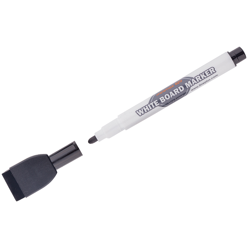 Маркер для белых досок Line Plus "MiniMax-820" черный, пулевидный, 2мм, с магнитом и губкой