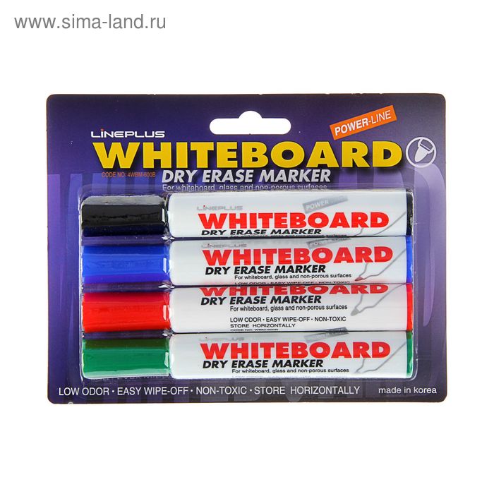 Набор маркеров для доски 4 цвета, Line Plus "600B", 2,0 мм, увеличенный запас чернил, блистер