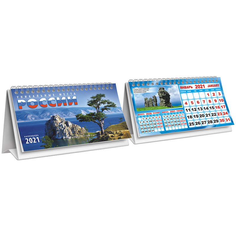 Календарь-домик 196*132мм, ЛиС "Россия. Уникальные места", на гребне, 2021г