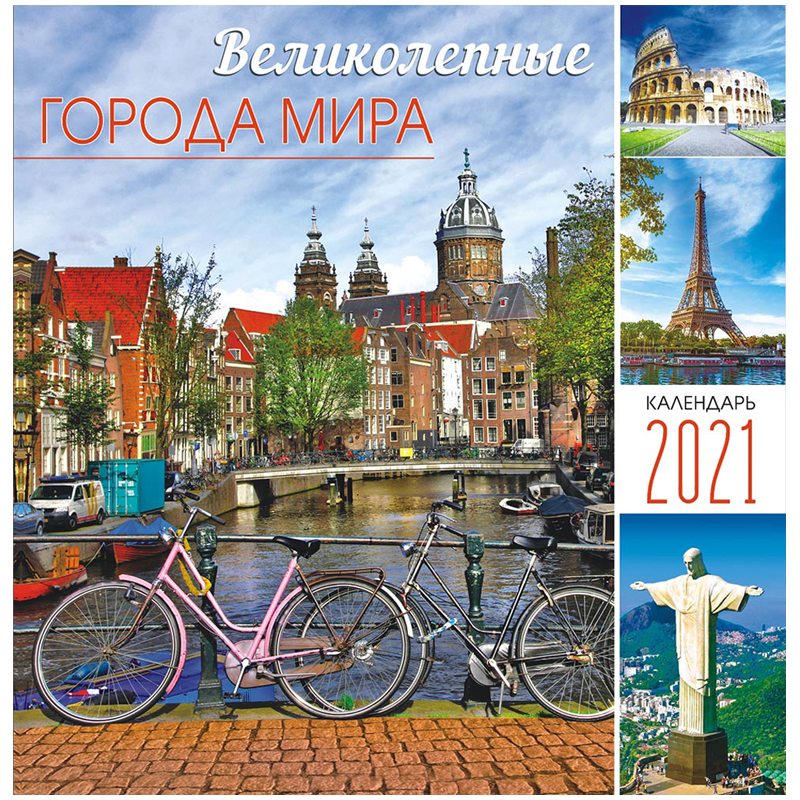 Календарь настенный перекидной на скрепке, 23*23 12 л. ЛиС "Великолепные города мира", 2021