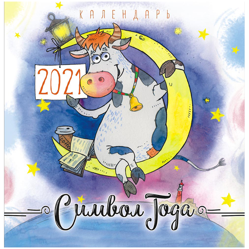 Календарь настенный перекидной на скрепке, 23*23 12 л. ЛиС "Год быка. Корова на Луне", 2021
