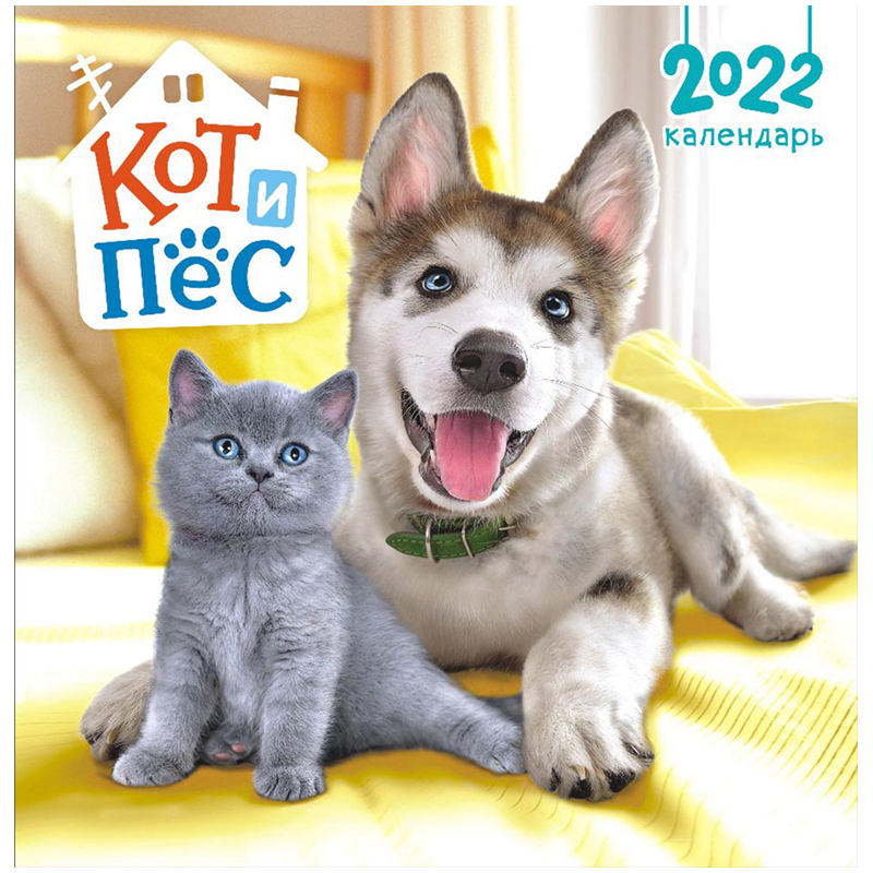 Календарь настенный перекидной на скрепке, 23*23 12л. ЛиС "Кот и пес", 2022