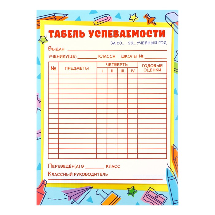 Плакат "Табель успеваемости" голубая рамка, А4