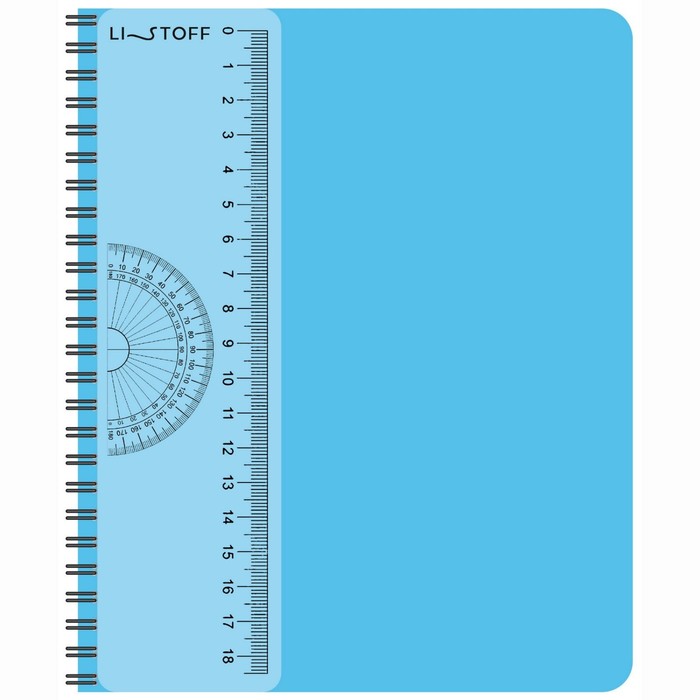 Тетрадь А5- 80 листов в клетку, на гребне, пластиковая обложка, съемная линейка из прозрачного пластика, голубая