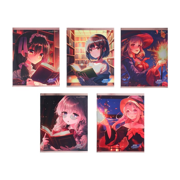 Тетрадь 48 листов в клетку "Волшебная библиотека", обложка мелованный картон, печать по металлизированной плёнке, блок 60г/м2, МИКС