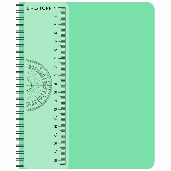 Тетрадь А5- 80 листов в клетку, на гребне, пластиковая обложка, съемная линейка из прозрачного пластика, мятная,