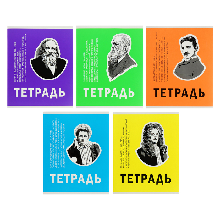 Тетрадь 48 листов в клетку, "Великие умы", обложка мелованный картон, выборочный лак, блок 60 г/м2, МИКС