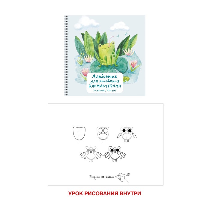 Скетчбук, квадрат 190 х 190 мм, 20 листов, на гребне, "Ква!", обложка мелованный картон, глянцевая ламинация, блок 120 г/м²