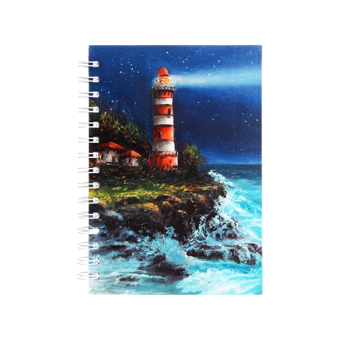 Тетрадь 80 листов в клетку на гребне "Маяк", обложка картон 7БЦ, глянцевая ламинация, блок 60г/м2