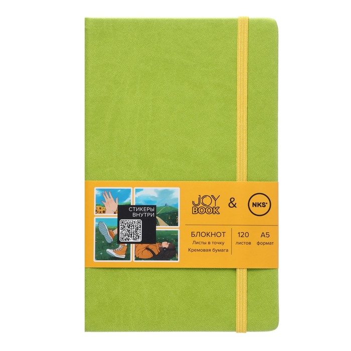 Бизнес-блокнот А5, Green country, 120 листов, в точку, твёрдая обложка, искусственная кожа, на резинке, ляссе, тонированный блок, 3 наклейки