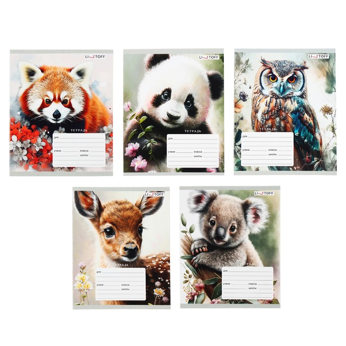 Тетрадь 12 листов в клетку "В дикой природе", обложка мелованный картон, блок 60г/м2, МИКС, 5 видов