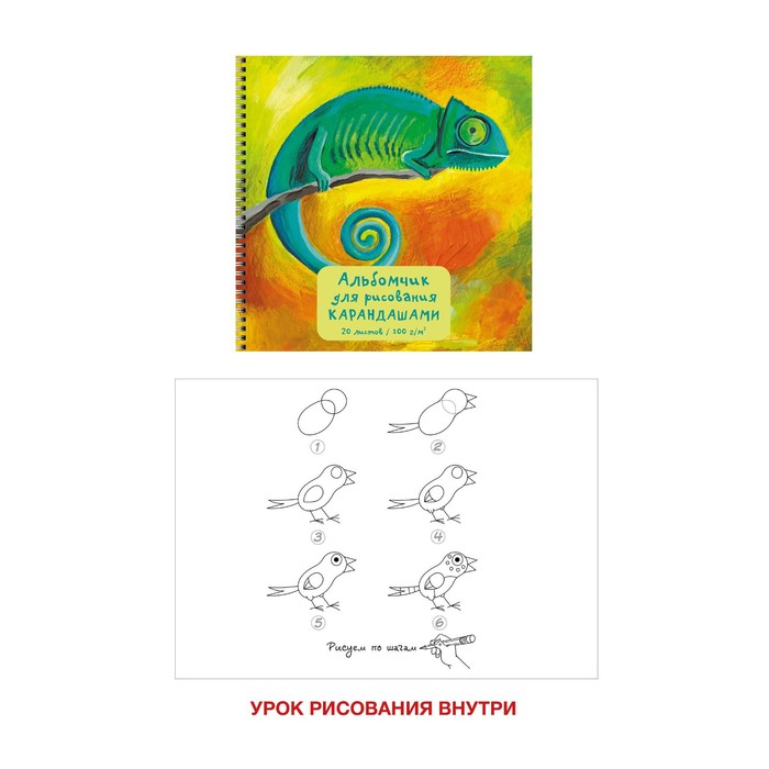 Скетчбук, квадрат 190 х 190 мм, 20 листов, на гребне, "Хамелеон", обложка мелованный картон, глянцевая ламинация, блок 100 г/м²