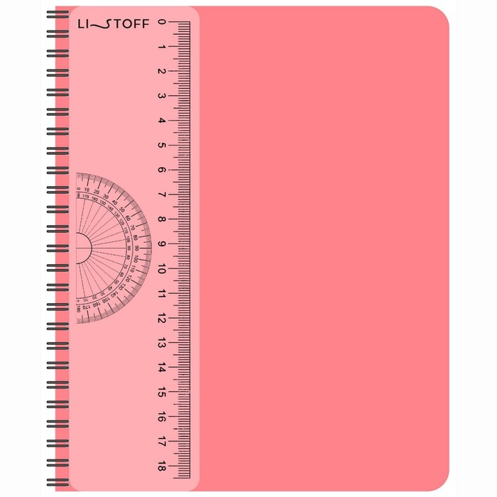 Тетрадь А5- 80 листов в клетку, на гребне, пластиковая обложка, съемная линейка из прозрачного пластика, коралловая