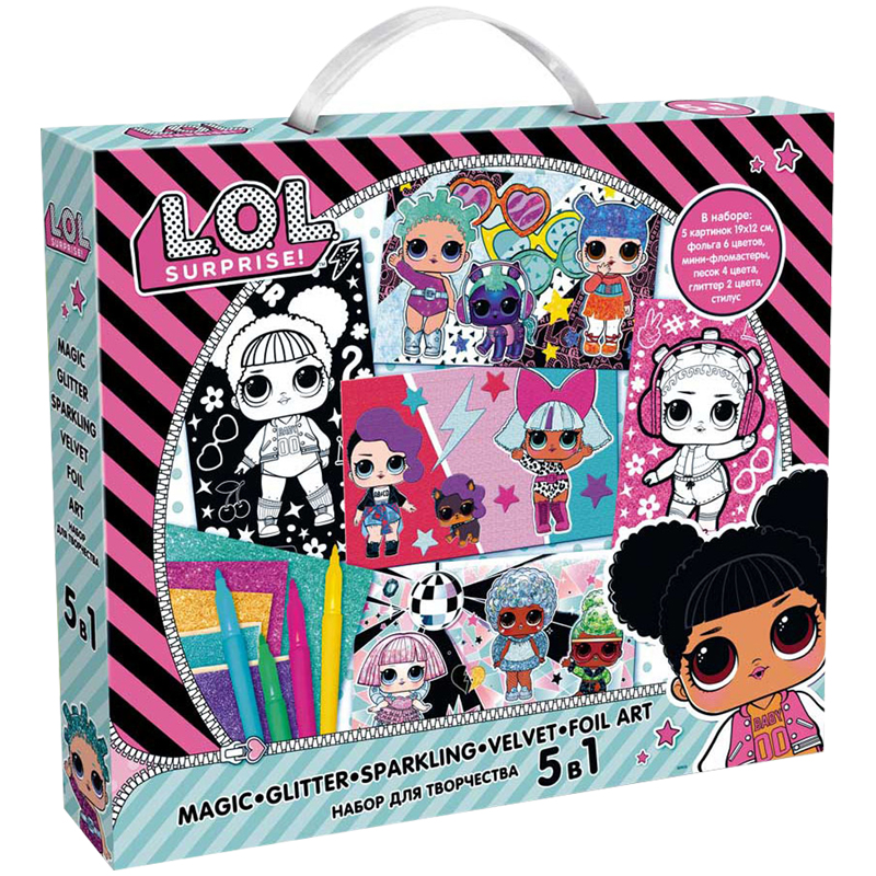 Набор для творчества 5в1 LOL surprise, бархатная раскраска, аппликация, глиттер, песок, фольга, скретч