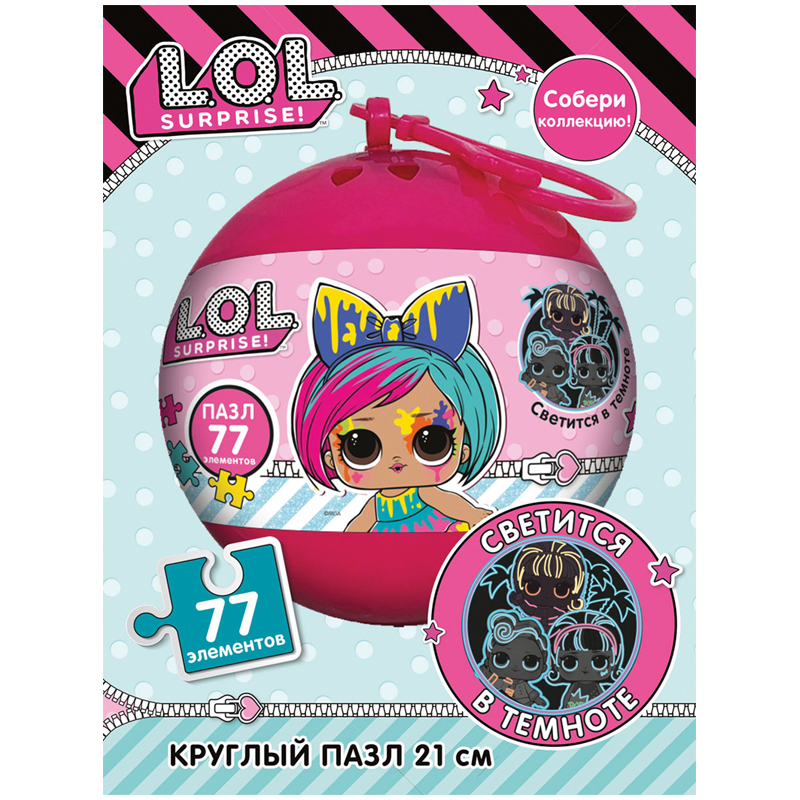 Пазл 77 эл. LOL surprise, светящийся, пластиковый шар, ассорти