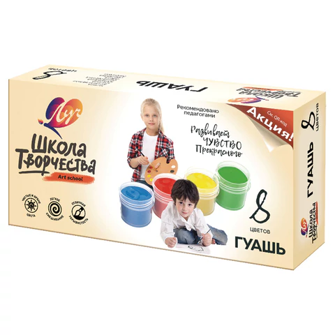 Гуашь ЛУЧ "Школа творчества", 8 цветов по 20 мл, без кисти, картонная упаковка, 29С 1752-08