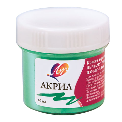 Краска акриловая ЛУЧ, баночка 40 мл, перламутровая, изумрудная, 25С 1565-08