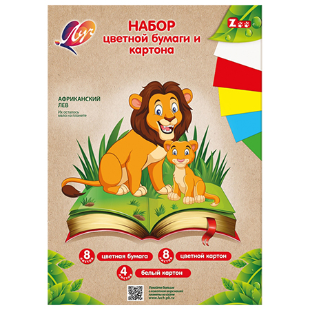 Набор цветная бумага+картон " Луч " А4 Zoo Лев, 20л (белый картон 4л, цветной картон 8л, цветная бумага 8л), в папке