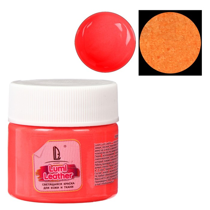 Краска акриловая люминесцентная (светящаяся в темноте), LUXART Lumi, 20 мл, красно-оранжевый, красно-оранжевое свечение (TL6V20)