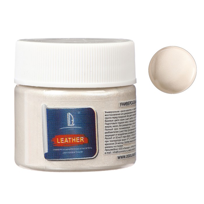 Краска акриловая по коже и ткани LUXART Leather Perl, 20 мл, белая перламутровая