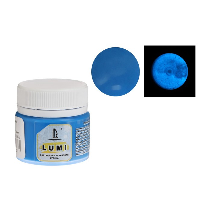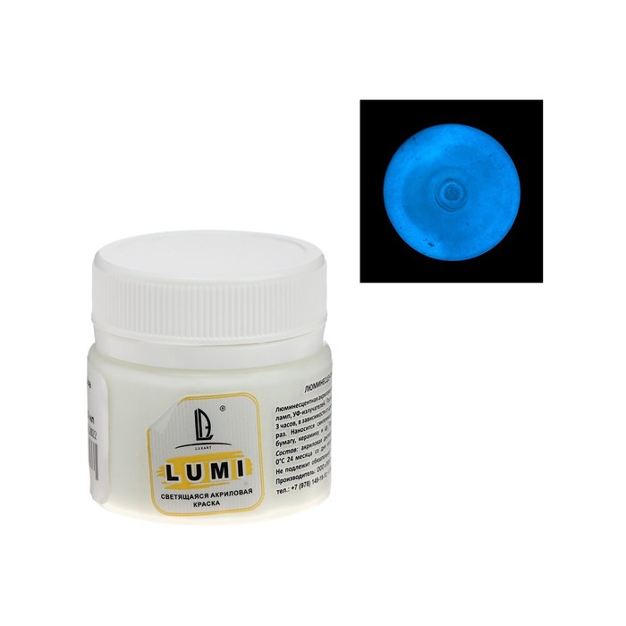 Краска акриловая люминесцентная (светящаяся в темноте), LUXART Lumi, 20 мл, небесно-голубой, небесно-голубое свечение (L4V20)