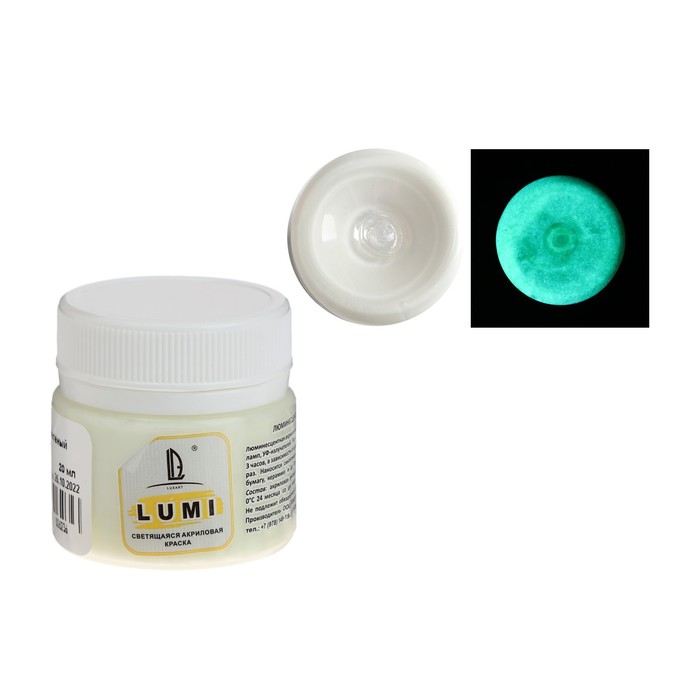 Краска акриловая люминесцентная (светящаяся в темноте), LUXART Lumi, 20 мл, белый, небесно-голубое свечение (L9V20)