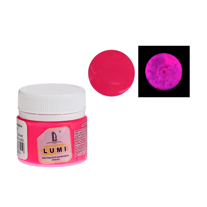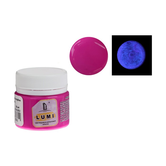 Краска акриловая люминесцентная (светящаяся в темноте), LUXART Lumi, 20 мл, розовый, небесно-голубое свечение (L10V20)