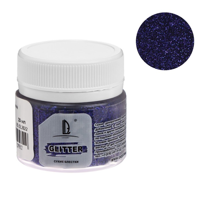 Декоративные блёстки LUXART LuxGlitter (сухие), 20 мл, размер 0.2 мм, синий