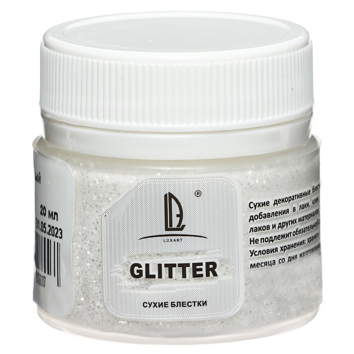 Декоративные блёстки LUXART LuxGlitter (сухие), 20 мл, размер 0.2 мм, белый, фракция