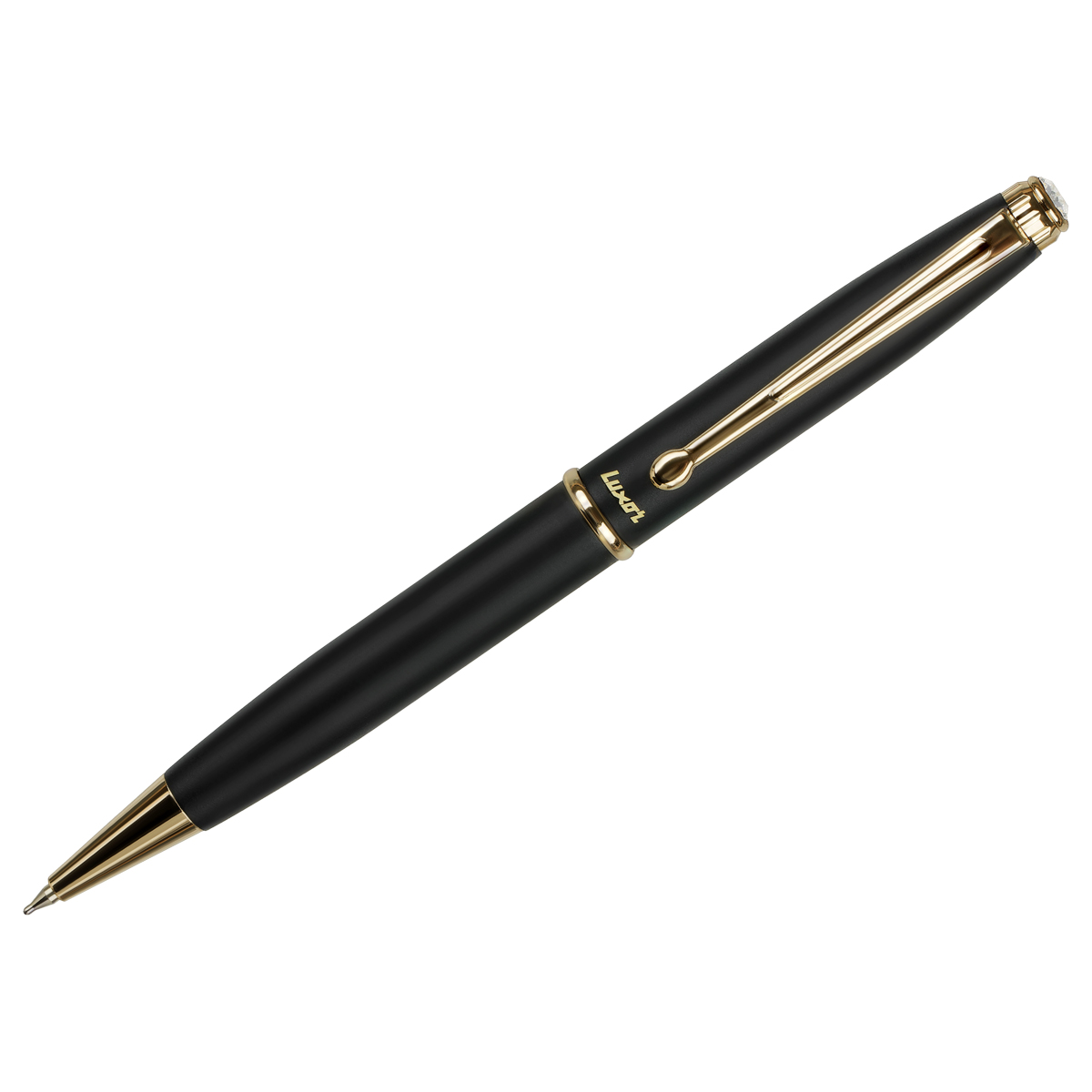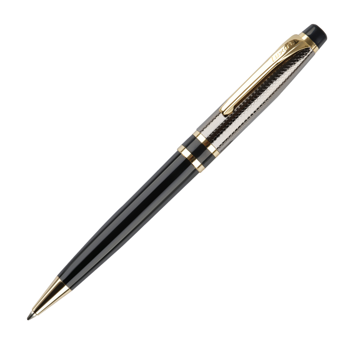 Ручка шариковая Luxor "Lancia" синяя, 0,7мм, корпус черный/золото, поворотный механизм, футляр