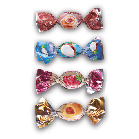 Карамель леденцовая МИНИ-М Тропик, ассорти (апельсин, банан, малина, ананас), 1 кг