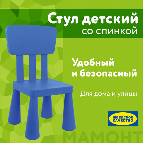 Стул детский со спинкой МАМОНТ синий, от 2 до 7 лет, безвредный пластик, 01.002.01.10.1