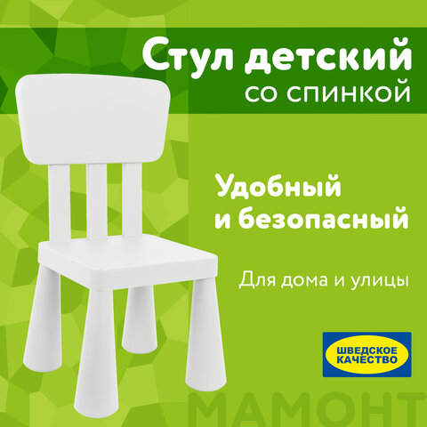 Стул детский со спинкой МАМОНТ белый, от 2 до 7 лет, безвредный пластик, 01.002.01.04.1