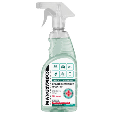 Антисептик для рук и поверхностей спиртосодержащий (70%) с распылителем 500 мл MANUFACTOR, дезинфицирующий, жидкость, N30927