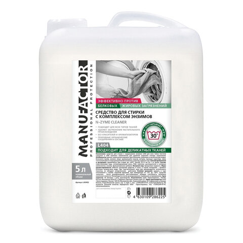 Гель для стирки для цветного белья 5 л MANUFACTOR, с энзимами, канистра, L40402