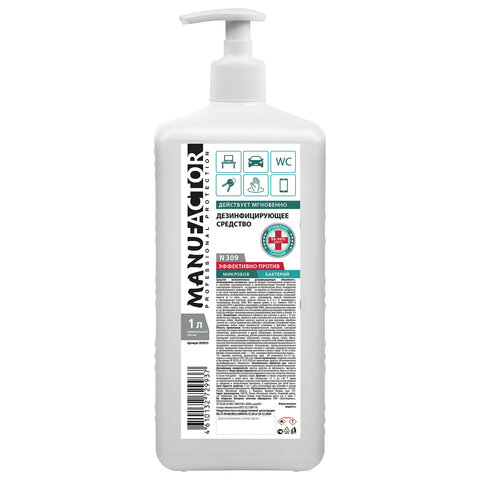 Антисептик для рук и поверхностей спиртосодержащий (70%) с дозатором 1 л MANUFACTOR, дезинфицирующий, жидкость, N30933