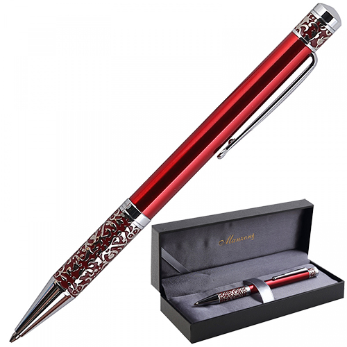 Ручка шариковая " Manzoni " Marinella синяя 1мм, поворотный механизм, металлический красный корпус, толщина письма- 0,50мм, кожзам футляр